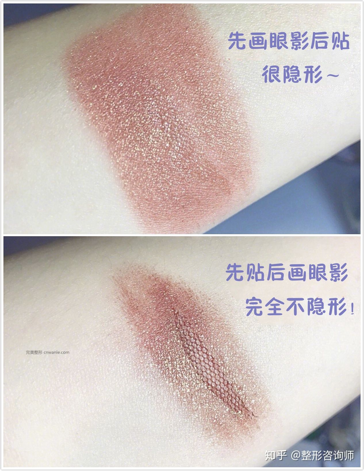 但是对于这种网状的双眼皮贴,我给大家一个建议:先画眼影,再贴双眼皮贴,这样超隐形,如果先贴双眼皮贴,后画眼影反而效果不佳!切记!!!
