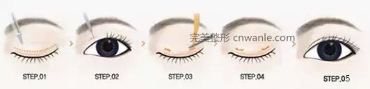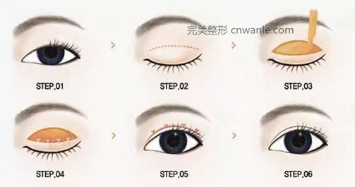 埋线法双眼皮做法相对简单,不需要切开皮肤,只用一根缝合线沿着画好的双眼皮线,将皮肤的真皮和睑板或上睑提肌腱缝合在一起,依靠其手术创伤所形成的疤痕粘连,形成双眼皮。