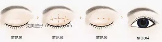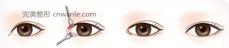 也称韩式双眼皮,一般是在上眼皮上做3个仅有1-2mm的不连续的微小切口,去除少量脂肪和眼轮匝肌后,将缝线分别穿过3个切口打活结,等调整好睑缘弧度后再依次缝合打结。