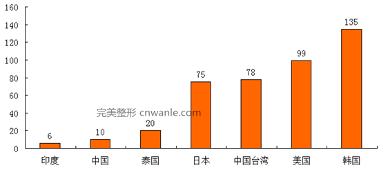 2013年各国(地区)每万人整容次数比较