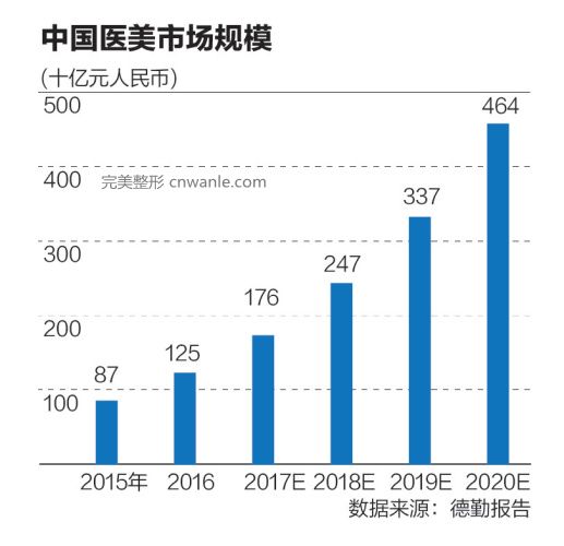 全球医美市场规模稳步增长。根据2017年7月德勤发布的一份报告,2016年,全球医疗美容市场规模约为100亿美元,预计年复合增长率将高达7.27%,2020年达到133.4亿美元的规模。